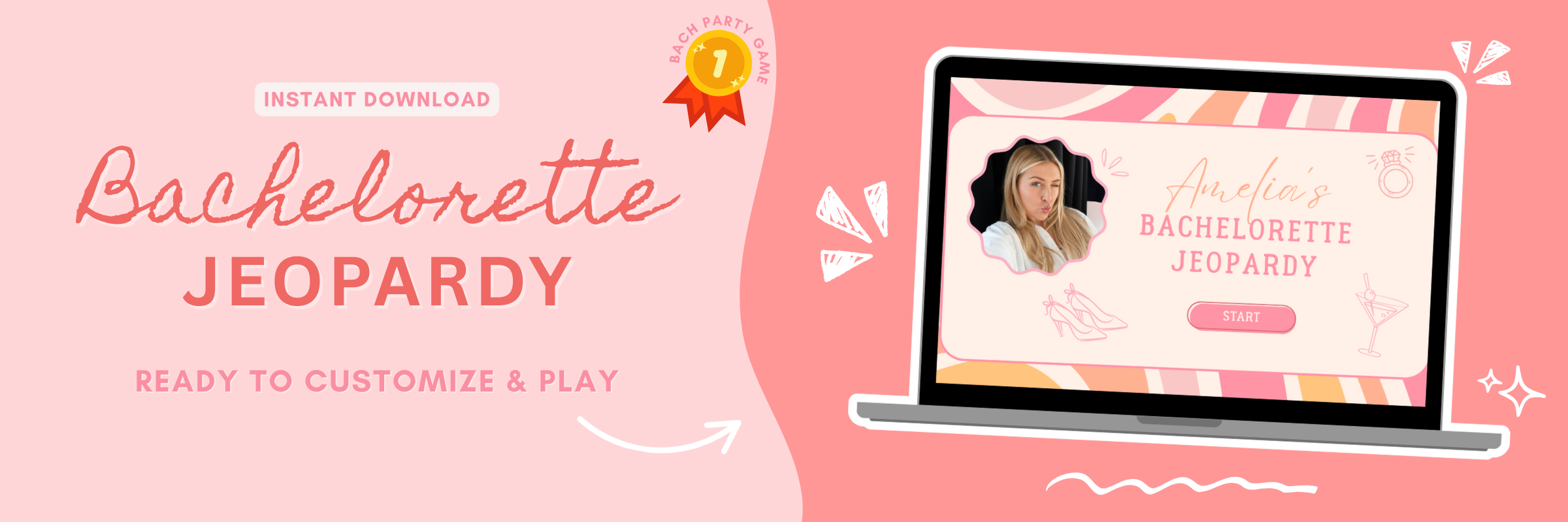 Pink and Peach Vibes – Editable Bachelorette Jeopardy Game