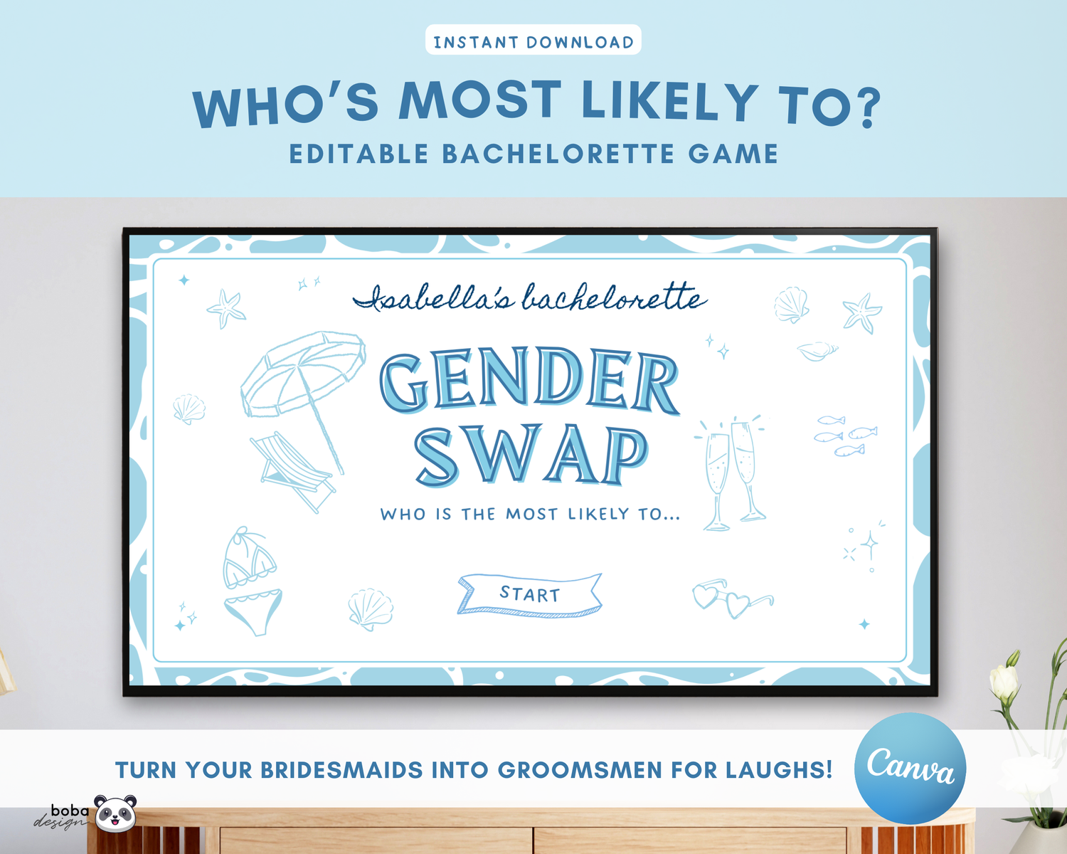 Fully editable and customizable, this hilarious game is perfect for laughs, reactions, and unforgettable bachelorette memories.