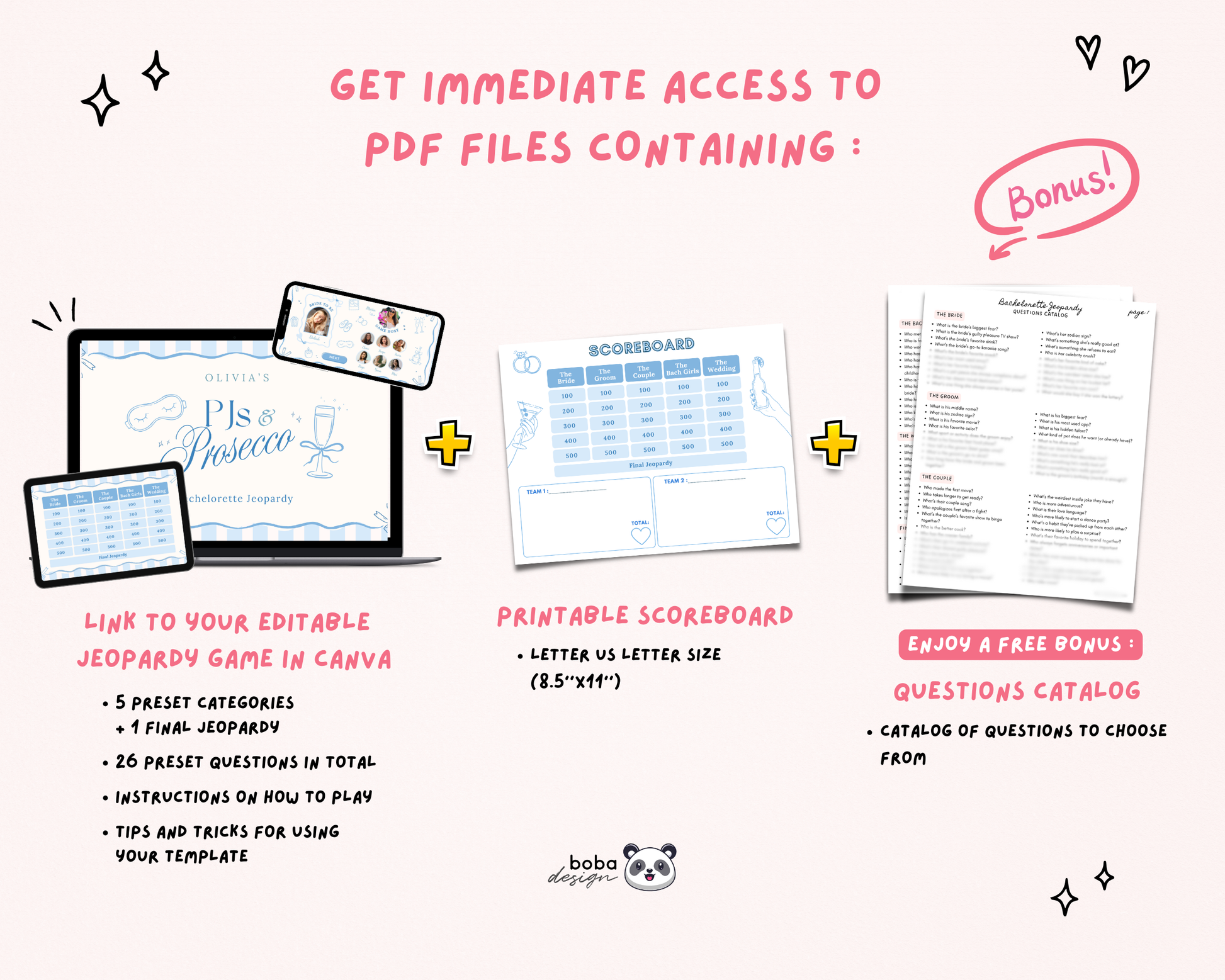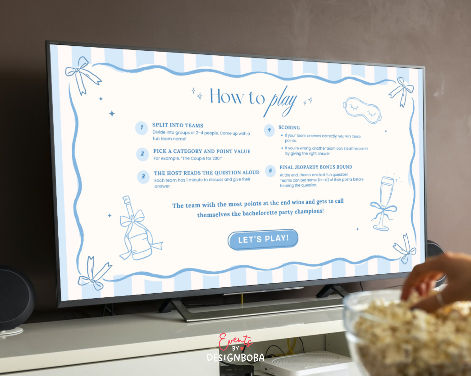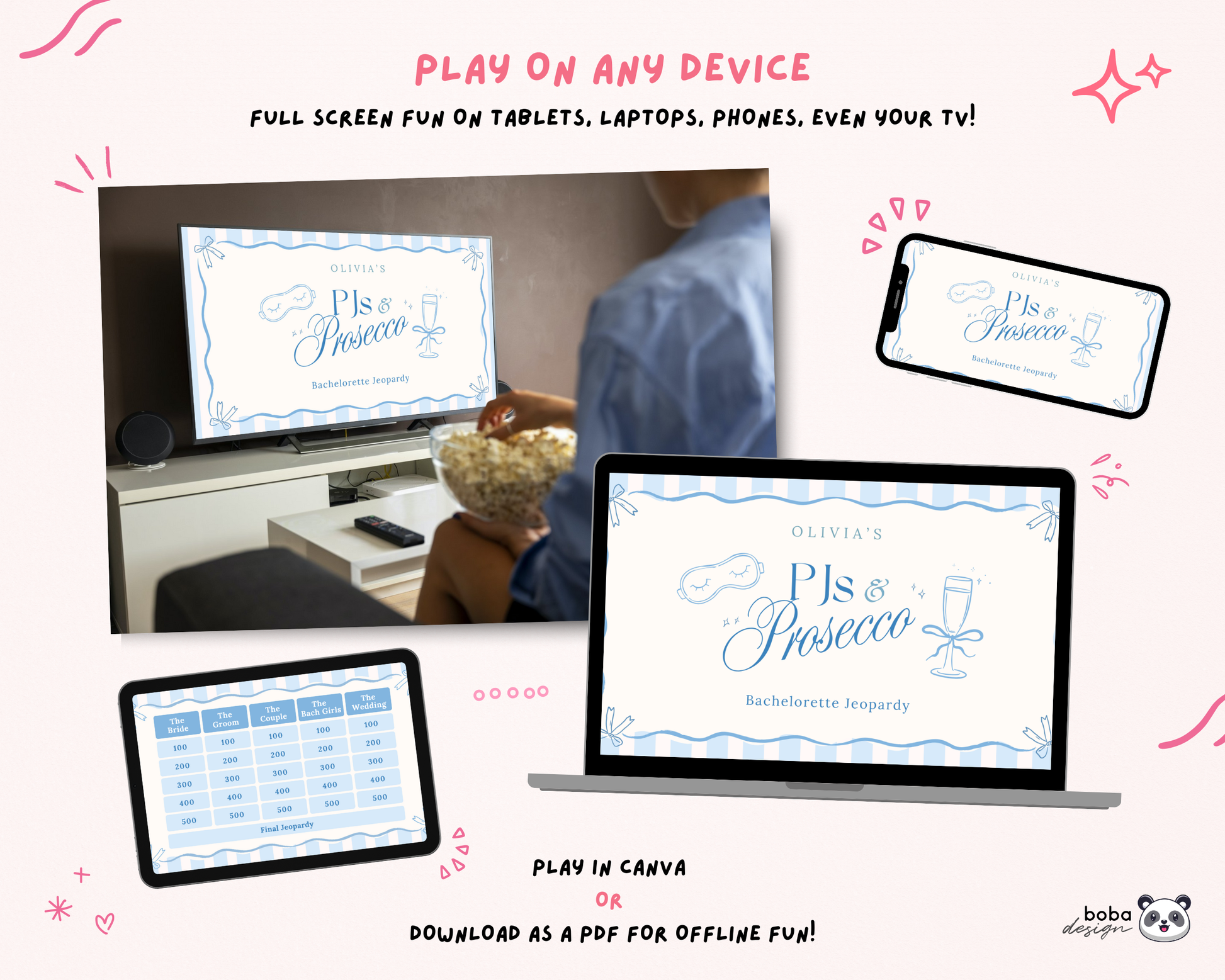 Blue PJs and Prosecco Bachelorette Jeopardy Game