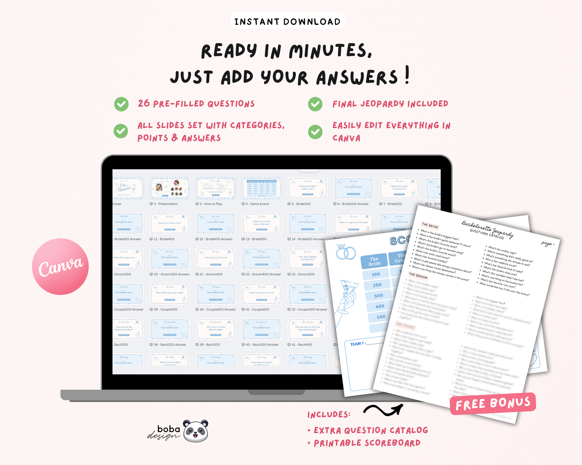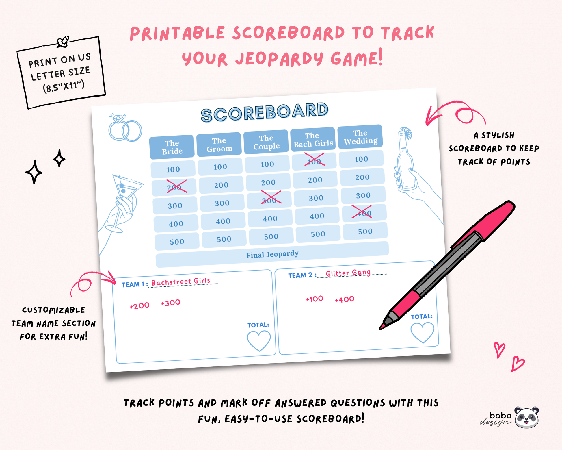 Looking for a fun and interactive game to celebrate the bride? This Jeopardy style game is made for bachelorette parties and girls nights where you want easy laughs, playful competition, and moments everyone will remember.