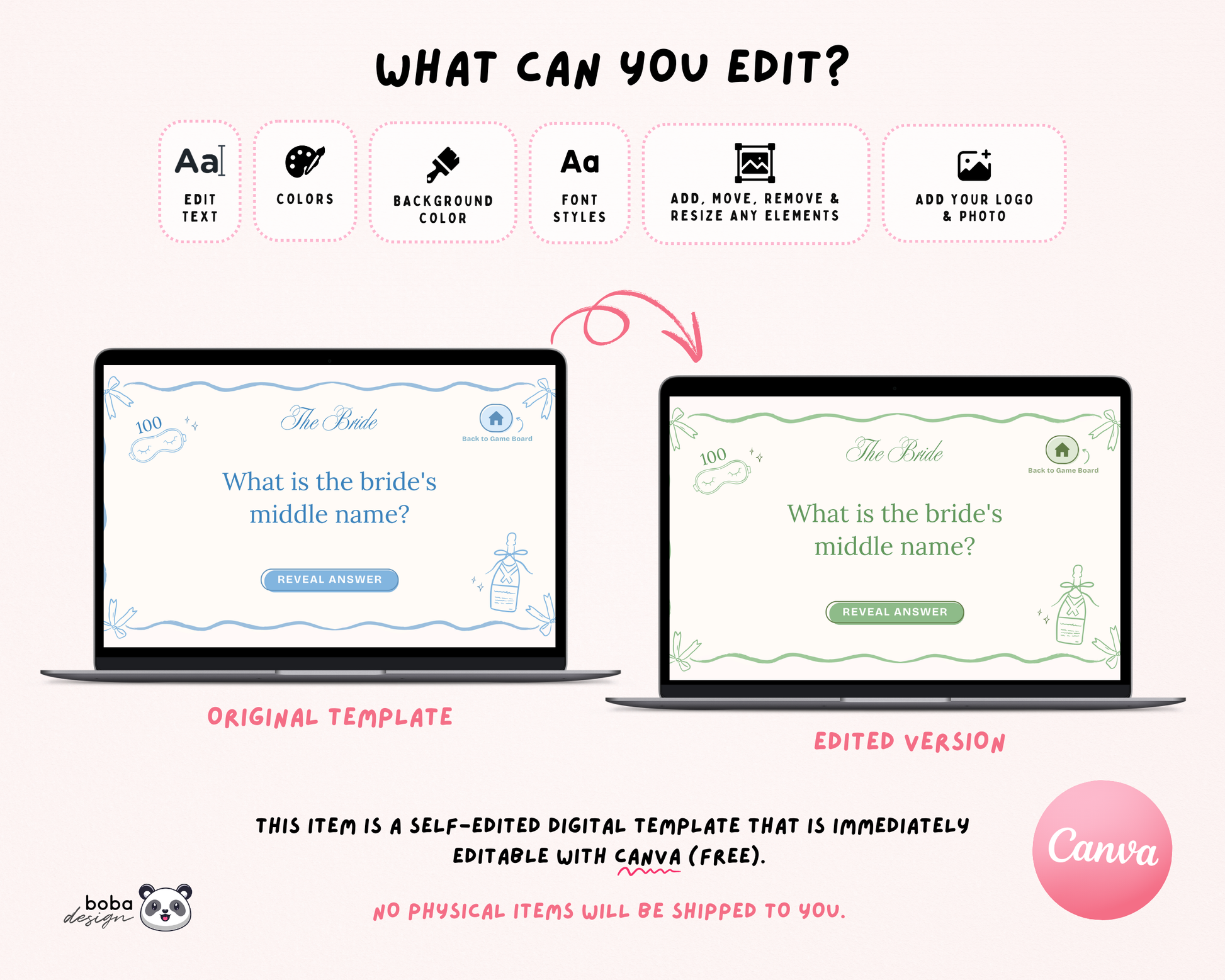⚠️ Please note that this is a digital download printable. No physical items will be shipped to you. This game is a CANVA template – super easy to edit, even if you’re new!