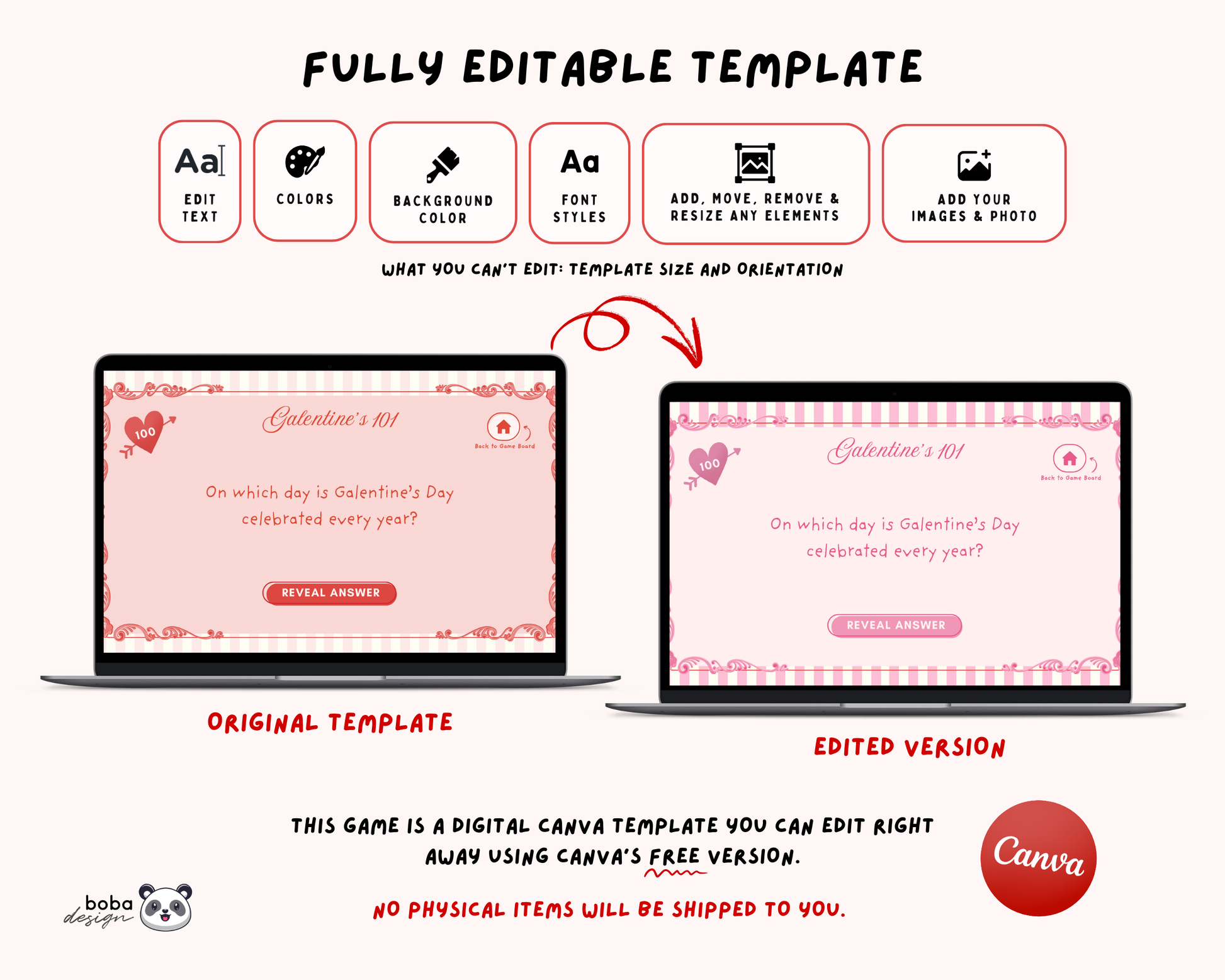 ⚠️ Please note that this is a digital download printable. No physical items will be shipped to you. This game is a CANVA template – super easy to edit, even if you’re new!