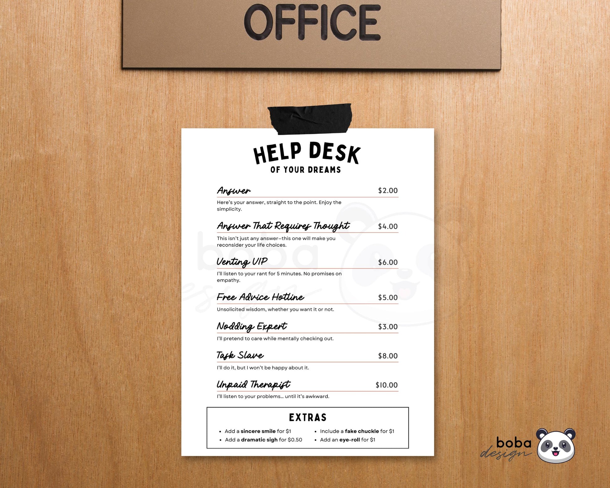 Tired of answering the same questions all day? Let this hilarious Help Desk Sign do the talking for you! 💰 Perfect for your desk, cubicle, or office, this printable sign adds a fun, passive-aggressive touch to your workspace while setting some much-needed boundaries. Whether you’re the go-to problem solver, the unpaid IT support, or just someone who’s had one too many interruptions, this sign has your back!
