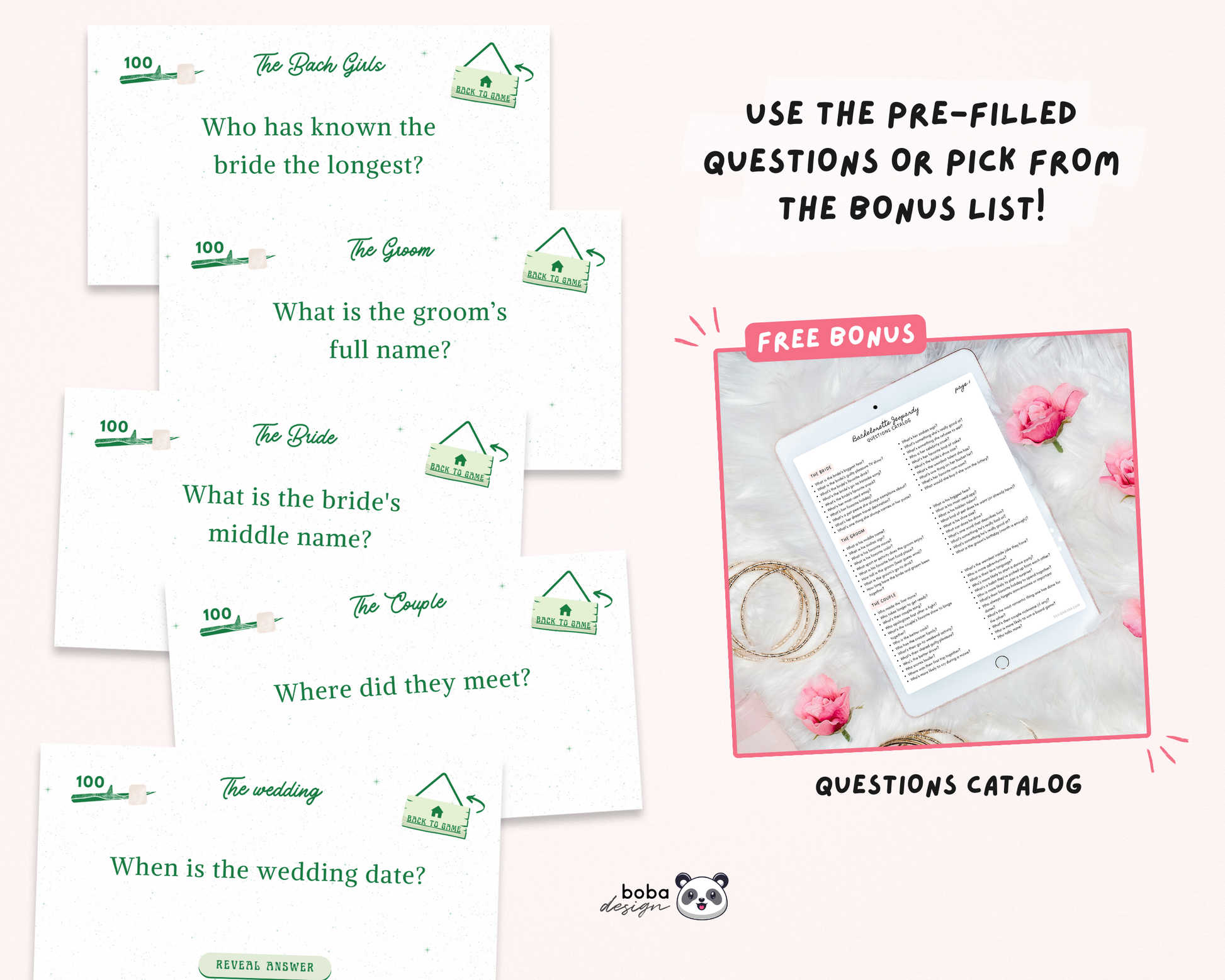 Green Camp Bachelorette Jeopardy Game (Canva Template)