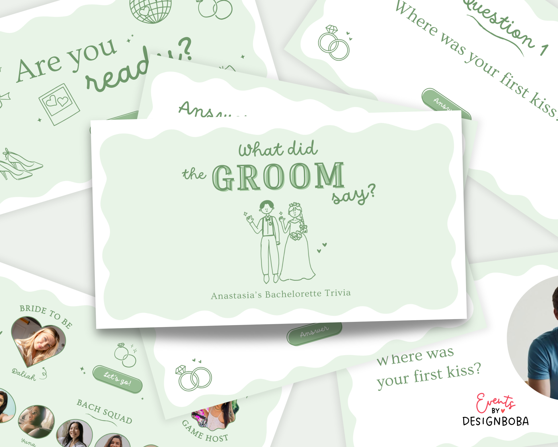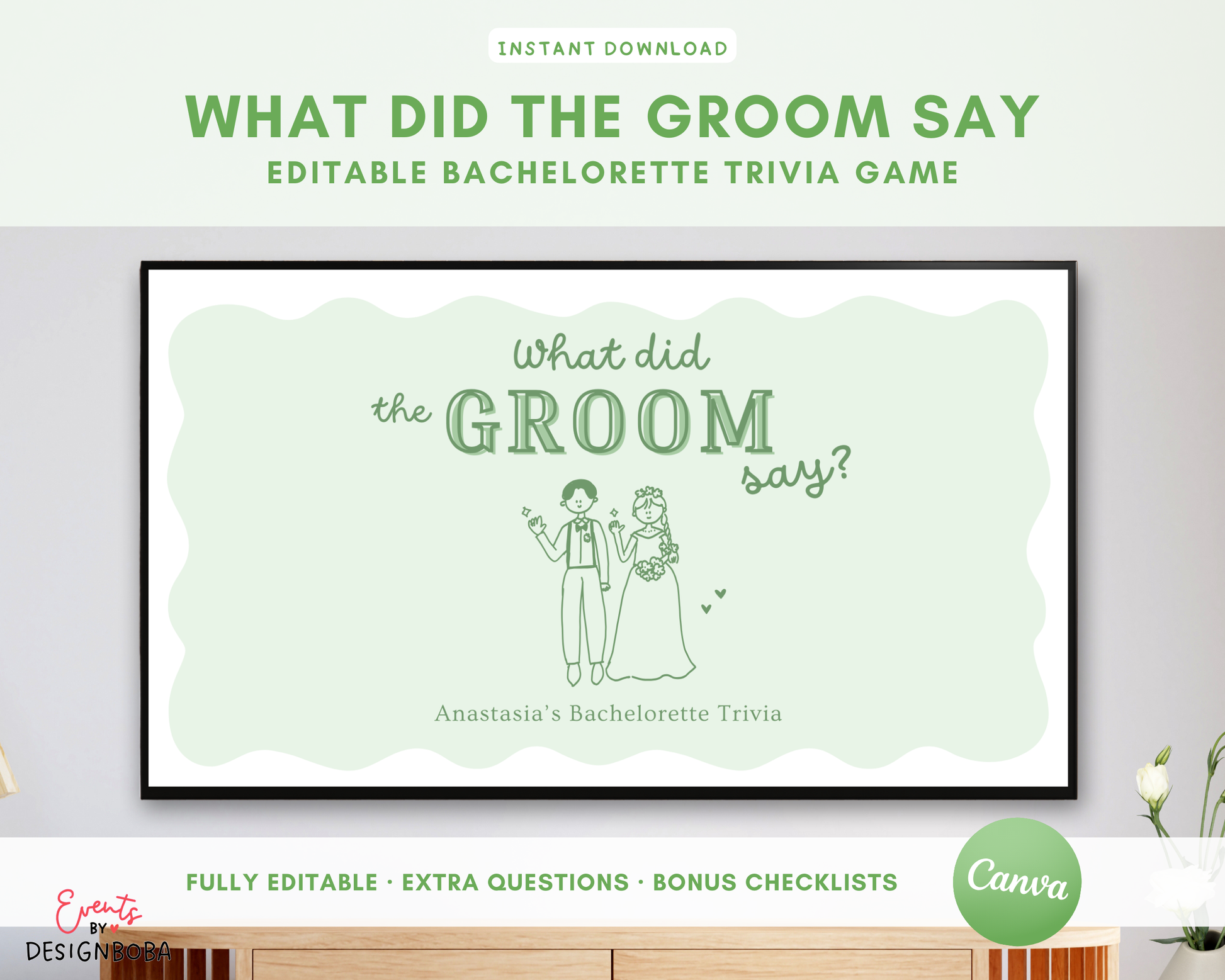 Green What Did the Groom Say – Bachelorette Game (Editable Canva Template)