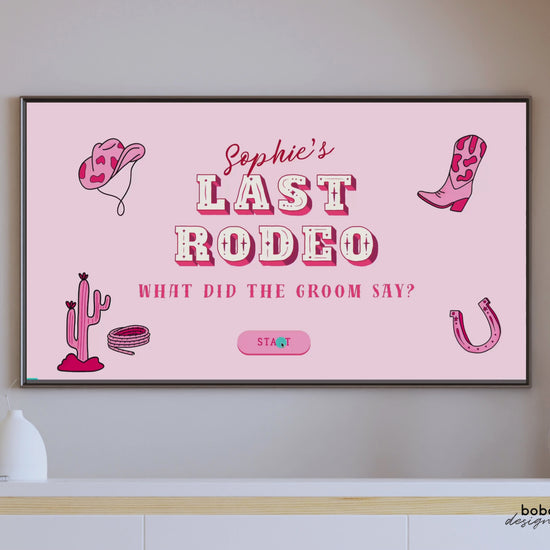 Celebrate the bride’s Last Rodeo with this pink cowgirl themed "What Did the Groom Say?" game. The bride tries to guess the groom’s answers to 20 prefilled questions. If she’s right, everyone drinks. If she’s wrong, she drinks. Either way, it’s a fun and memorable way to celebrate with the bach crew!
