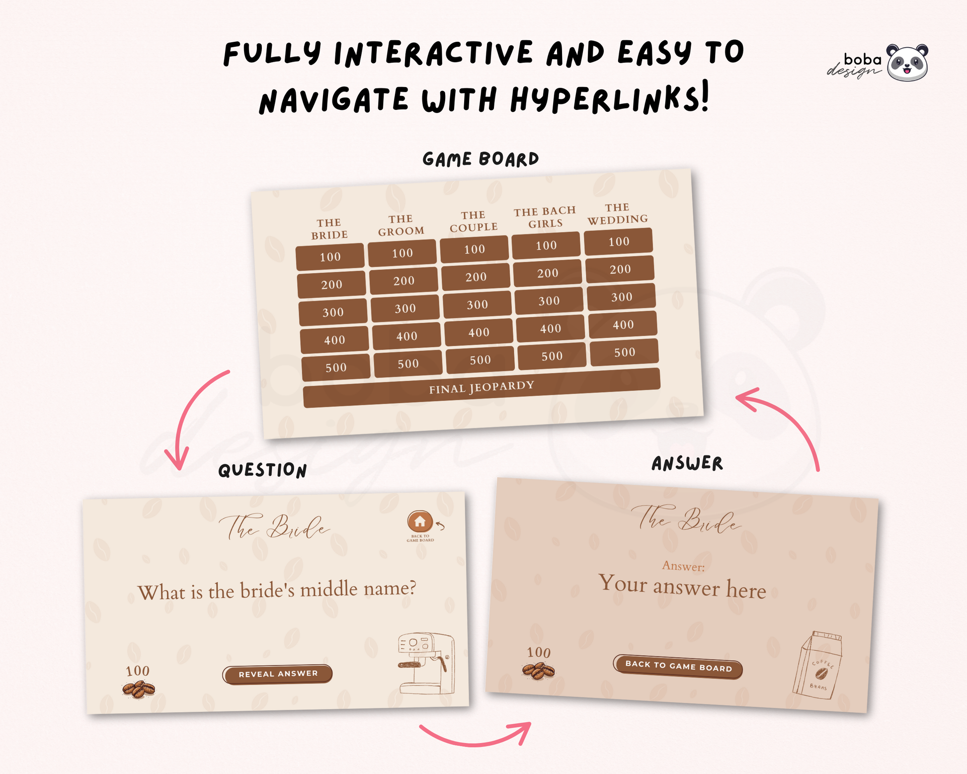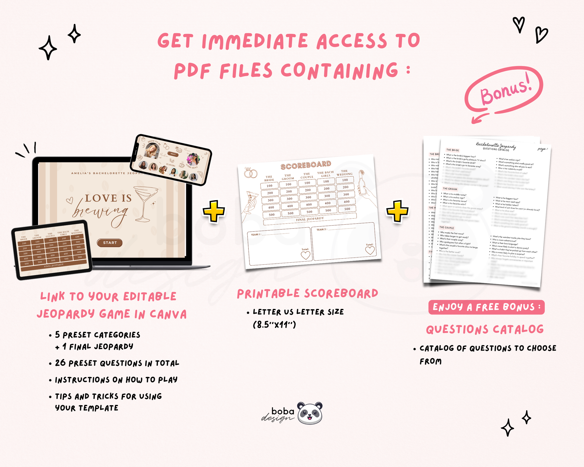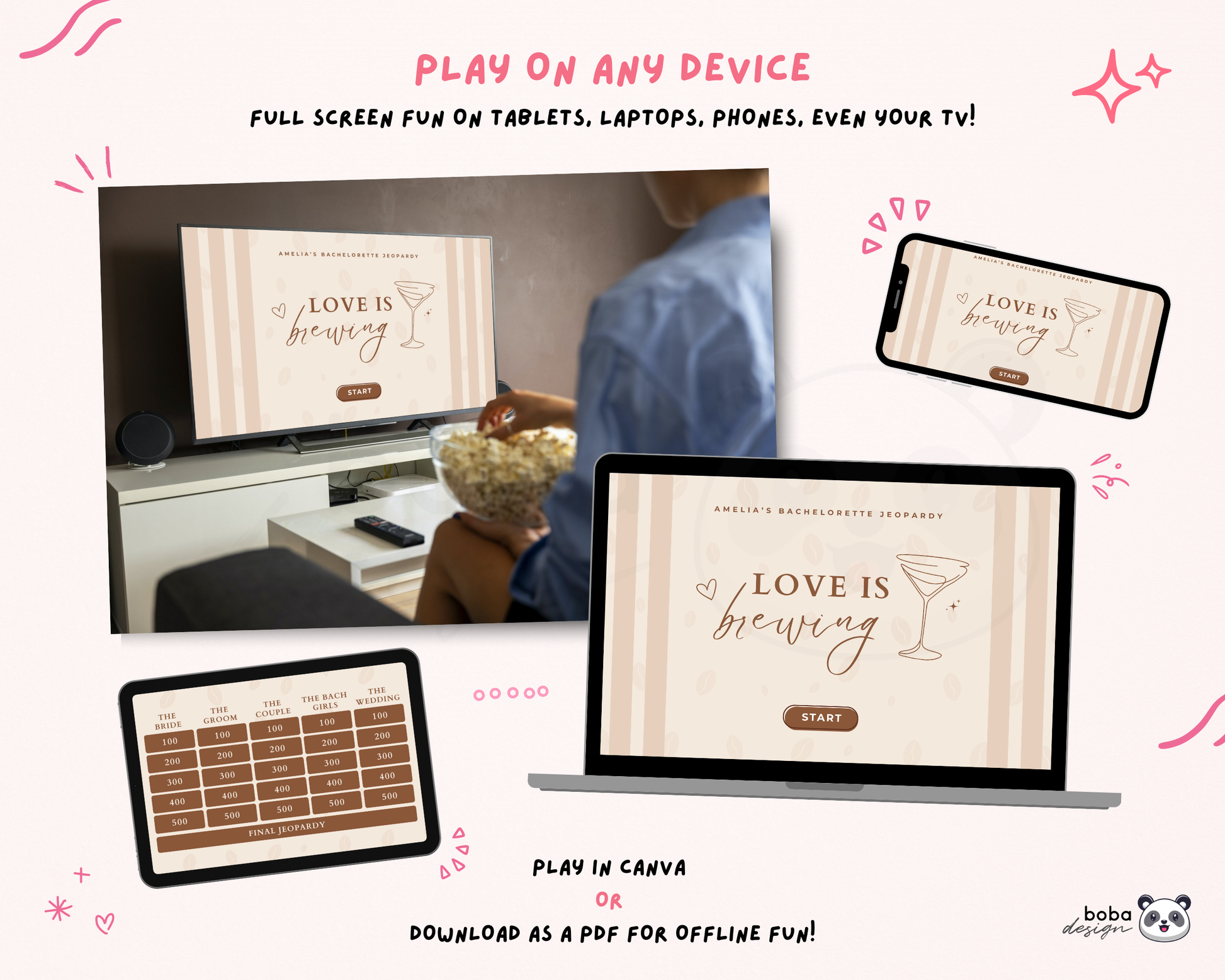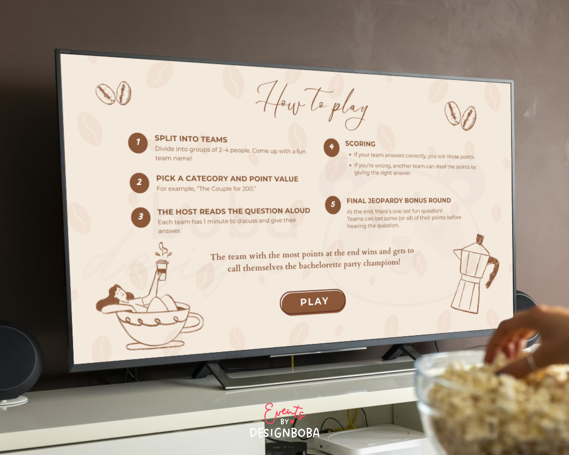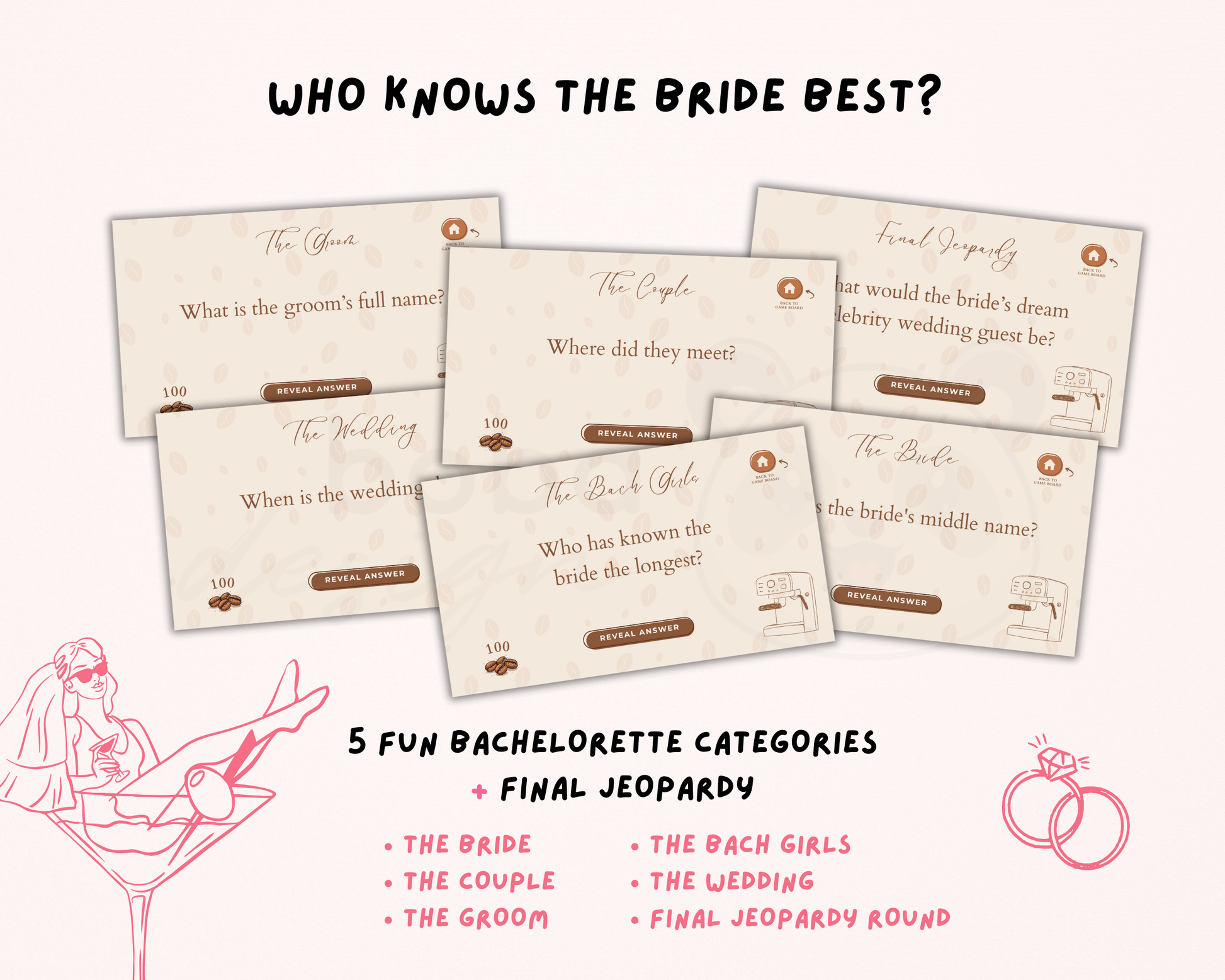 Looking for a fun and interactive game to celebrate the bride? This Jeopardy style game is made for bachelorette parties and girls nights where you want easy laughs, playful competition, and moments everyone will remember.