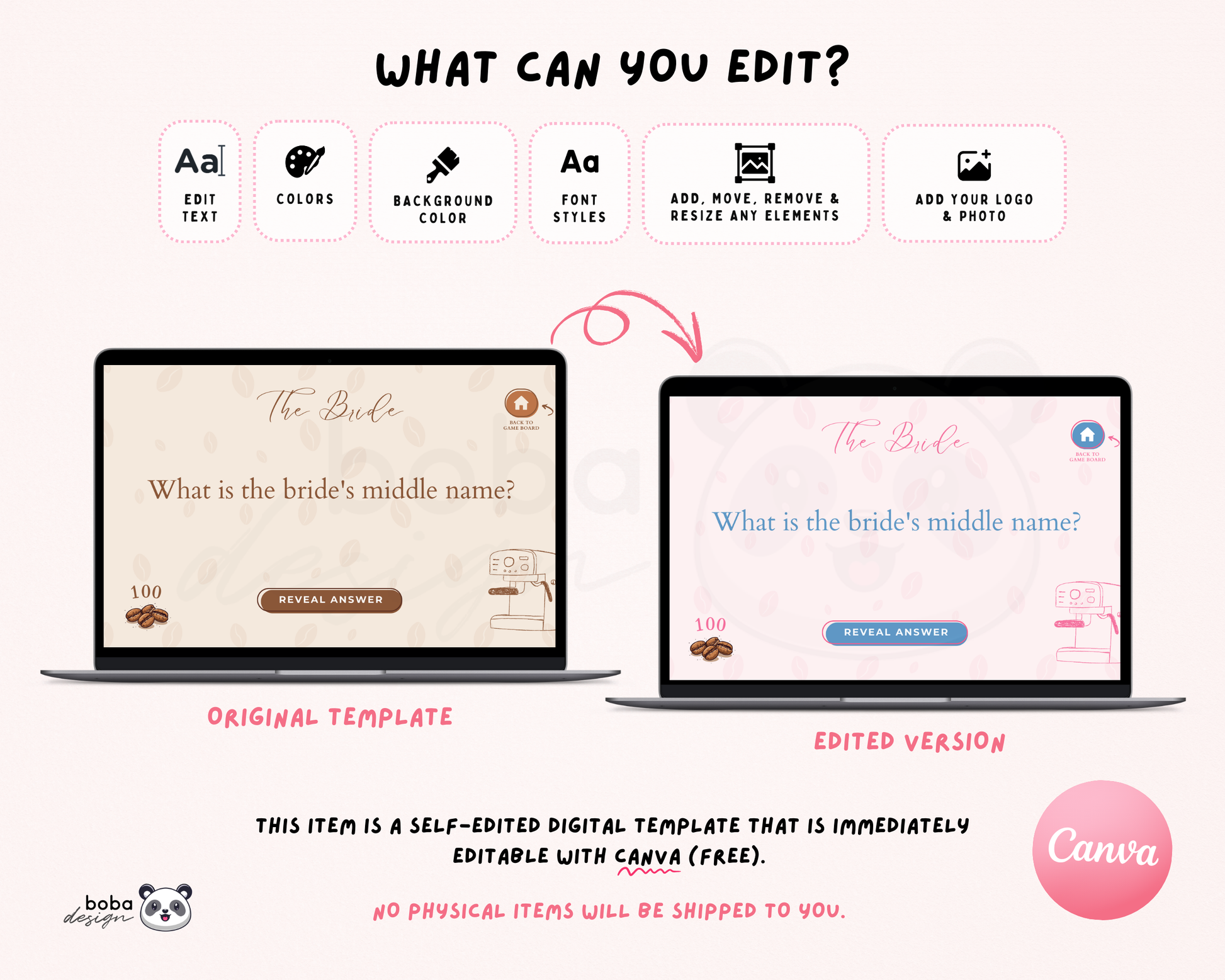 ⚠️ Please note that this is a digital download printable. No physical items will be shipped to you. This game is a CANVA template – super easy to edit, even if you’re new!