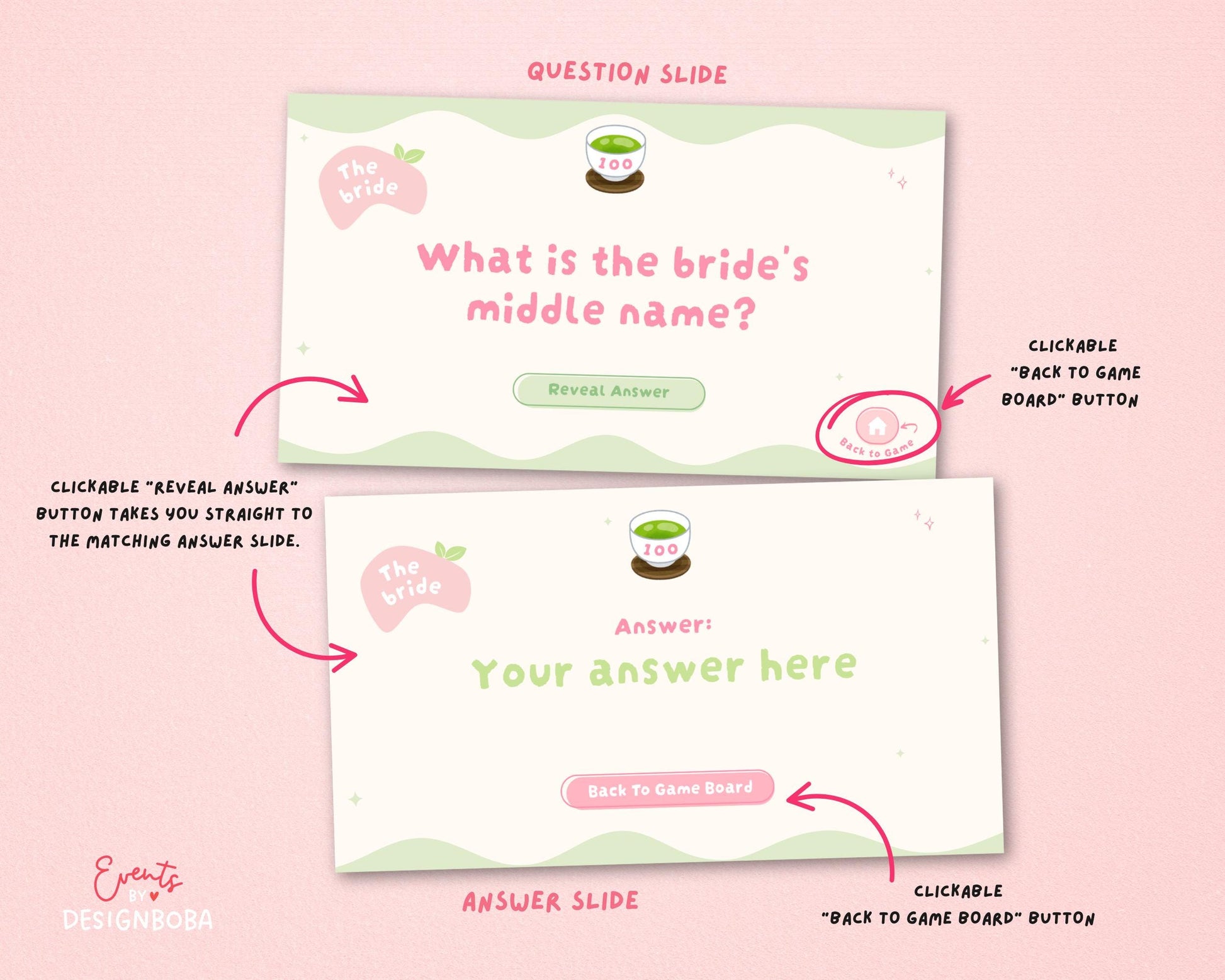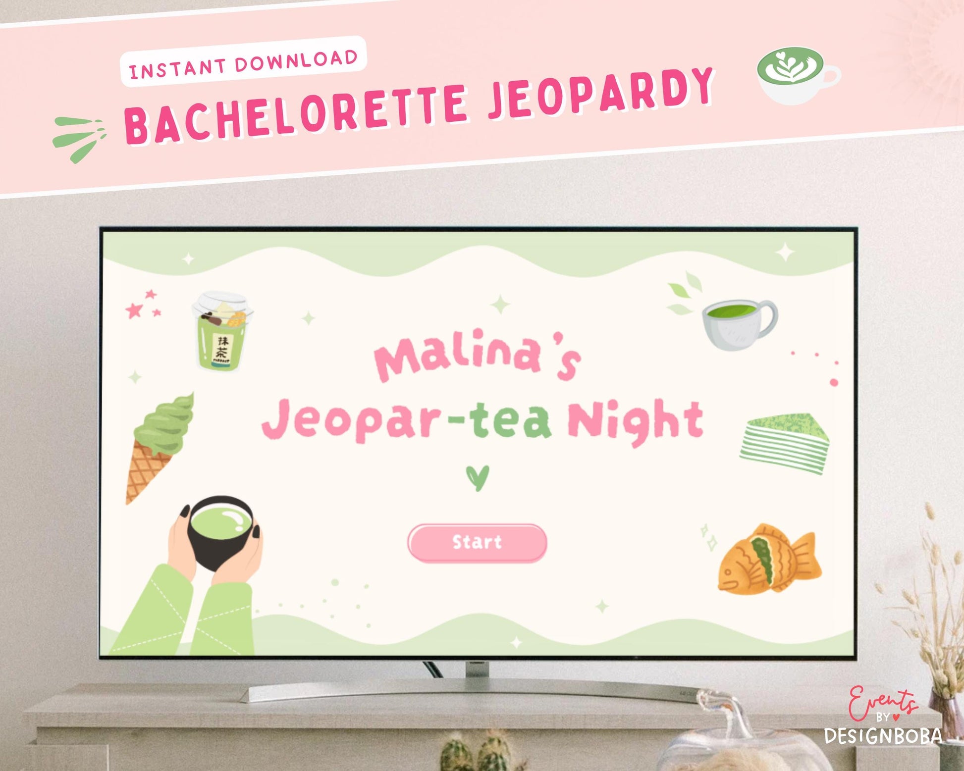 Matcha-Inspired Jeopardy Game – Tea Party Bachelorette (Canva Template)