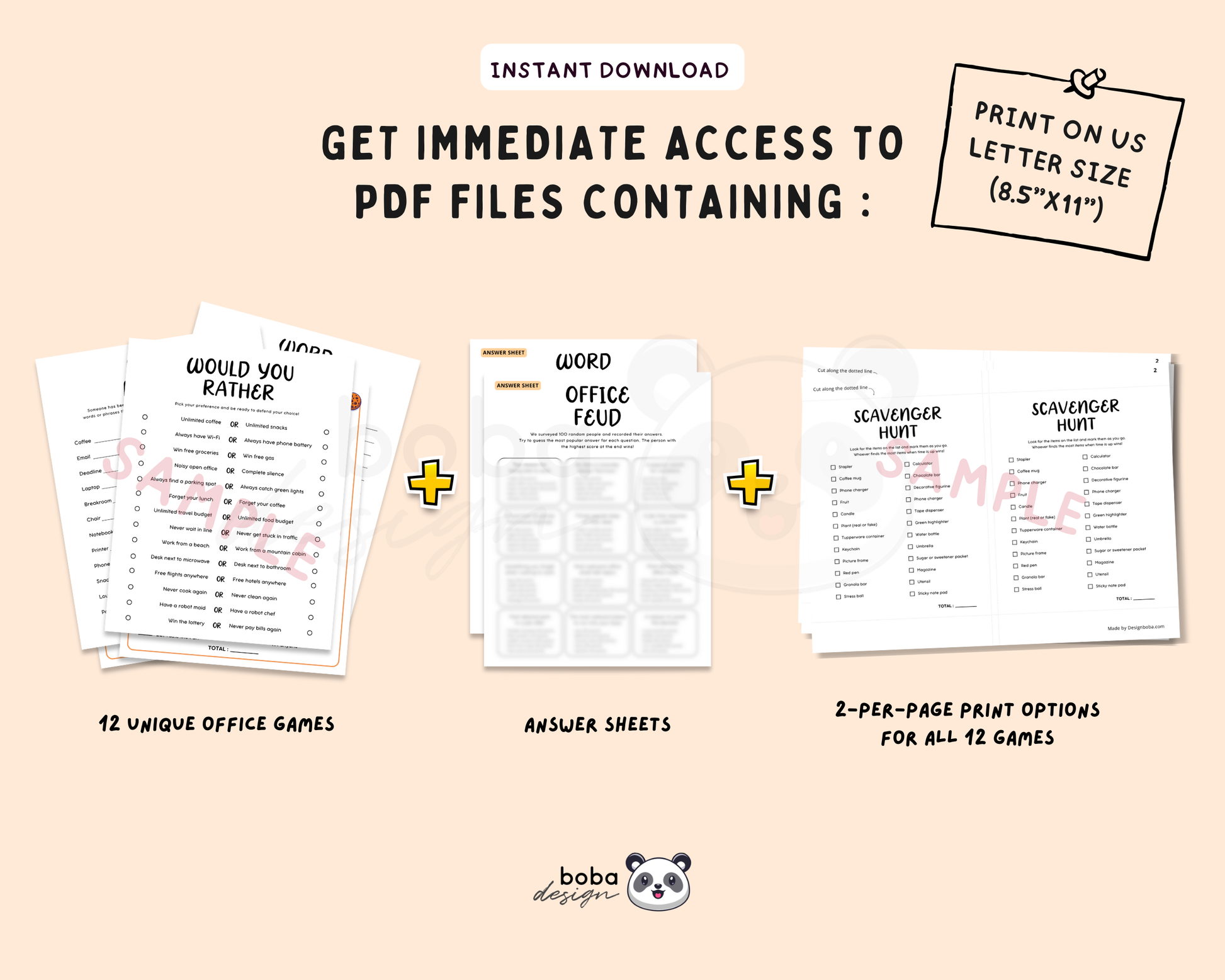 Make workdays more fun with this printable Office Games Bundle. It’s packed with 12 unique games that are perfect for team-building, office parties, or just a little break-time fun with coworkers.