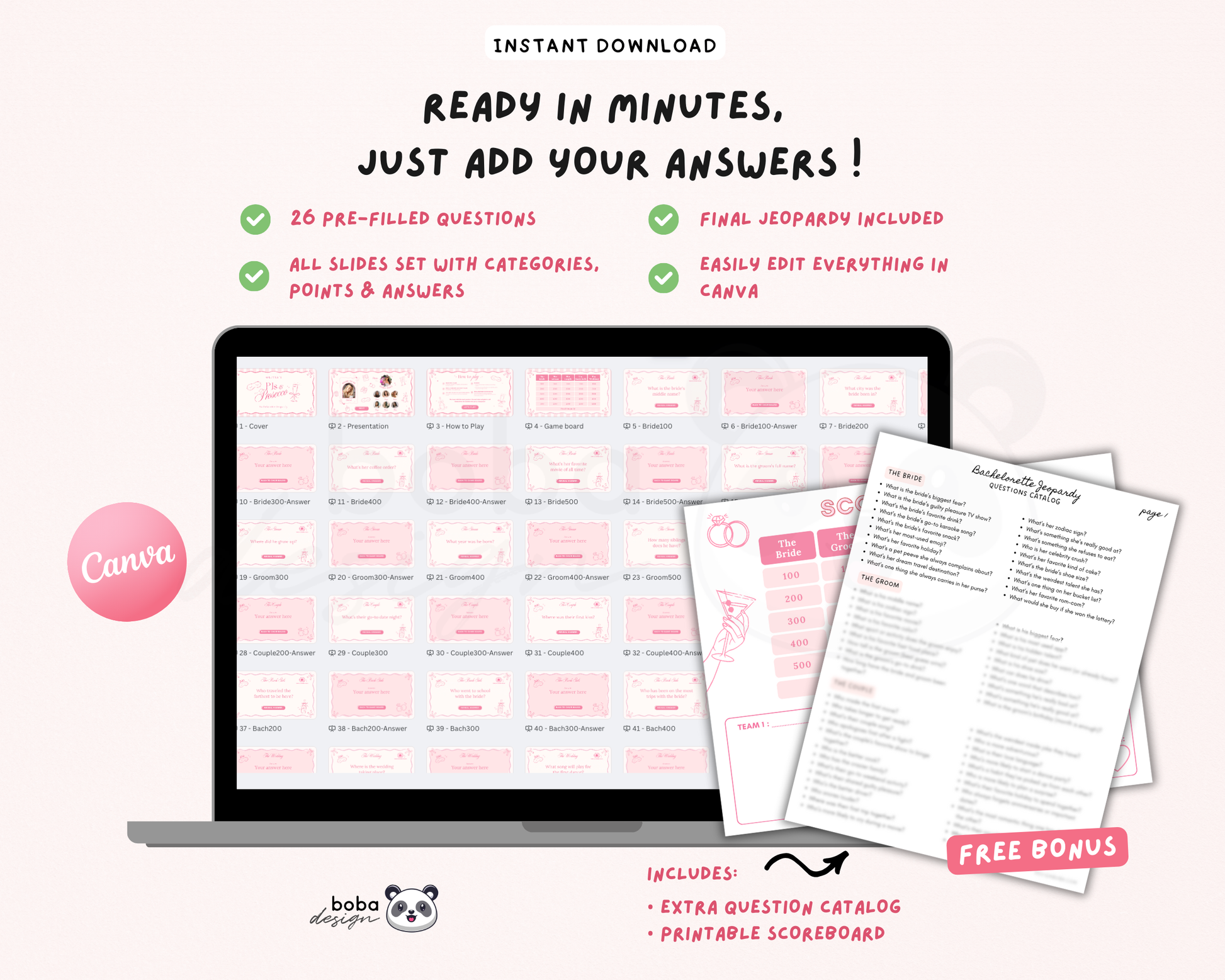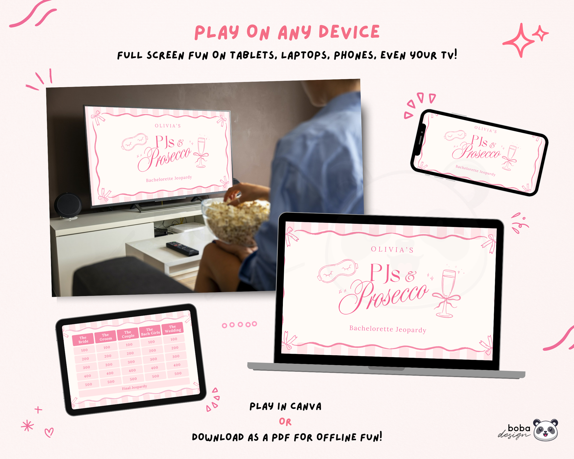 Pink PJs and Prosecco Bachelorette Jeopardy Game