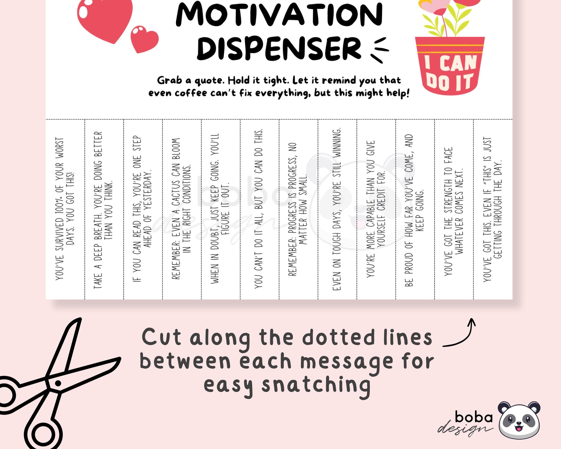 - PDF containing 1 page of Emergency Motivation Dispenser tear-offs.