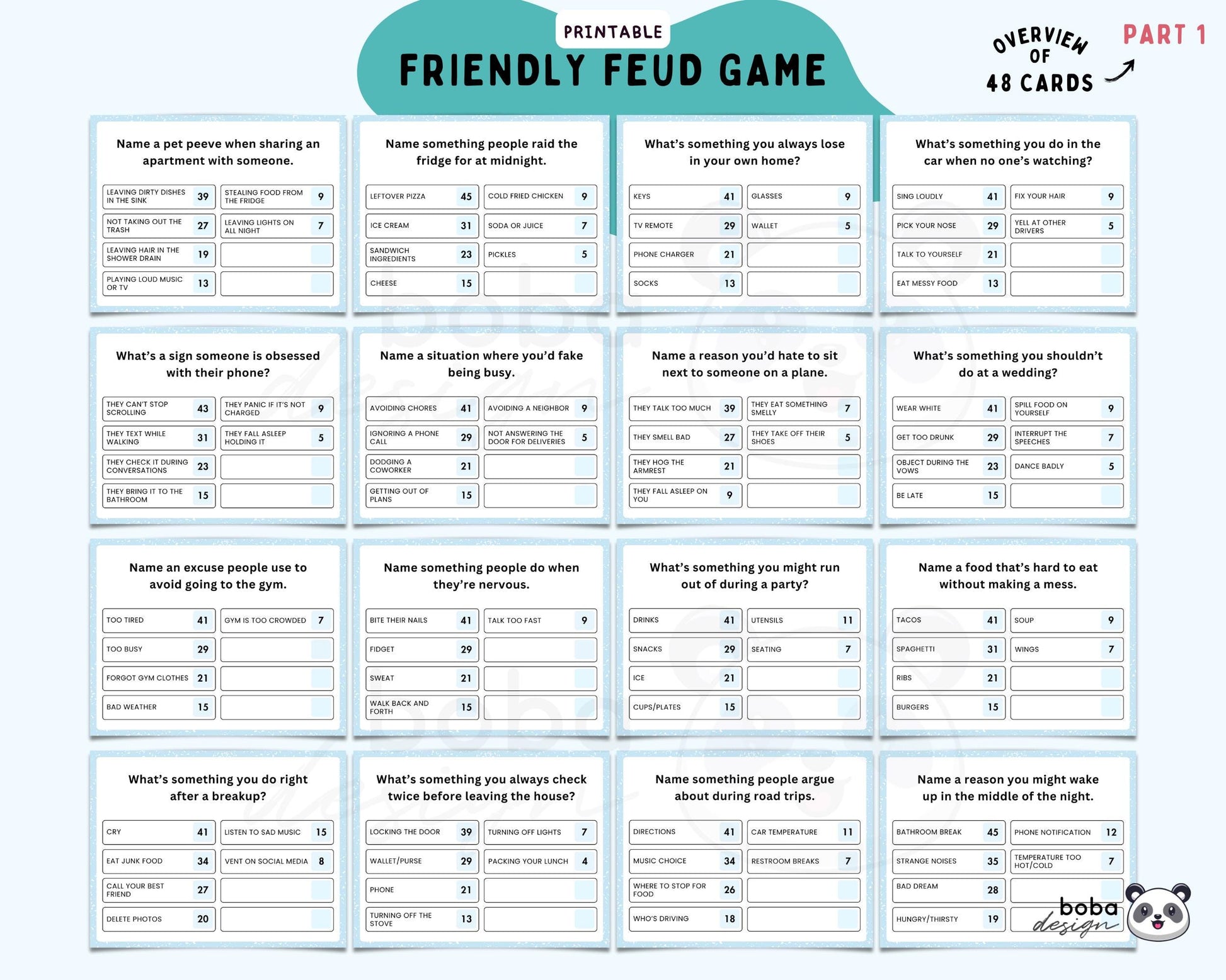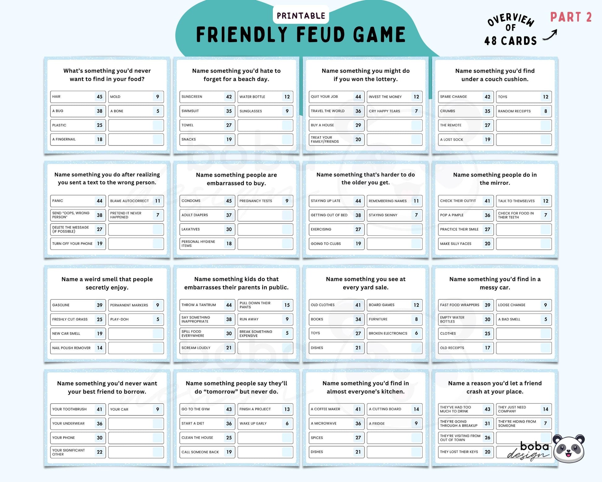 Get ready for hours of fun and friendly competition with Friendly Feud! This printable game has everything you need for an exciting trivia showdown. Whether you're with family, friends, or coworkers, it’s sure to bring lots of laughs and good times.