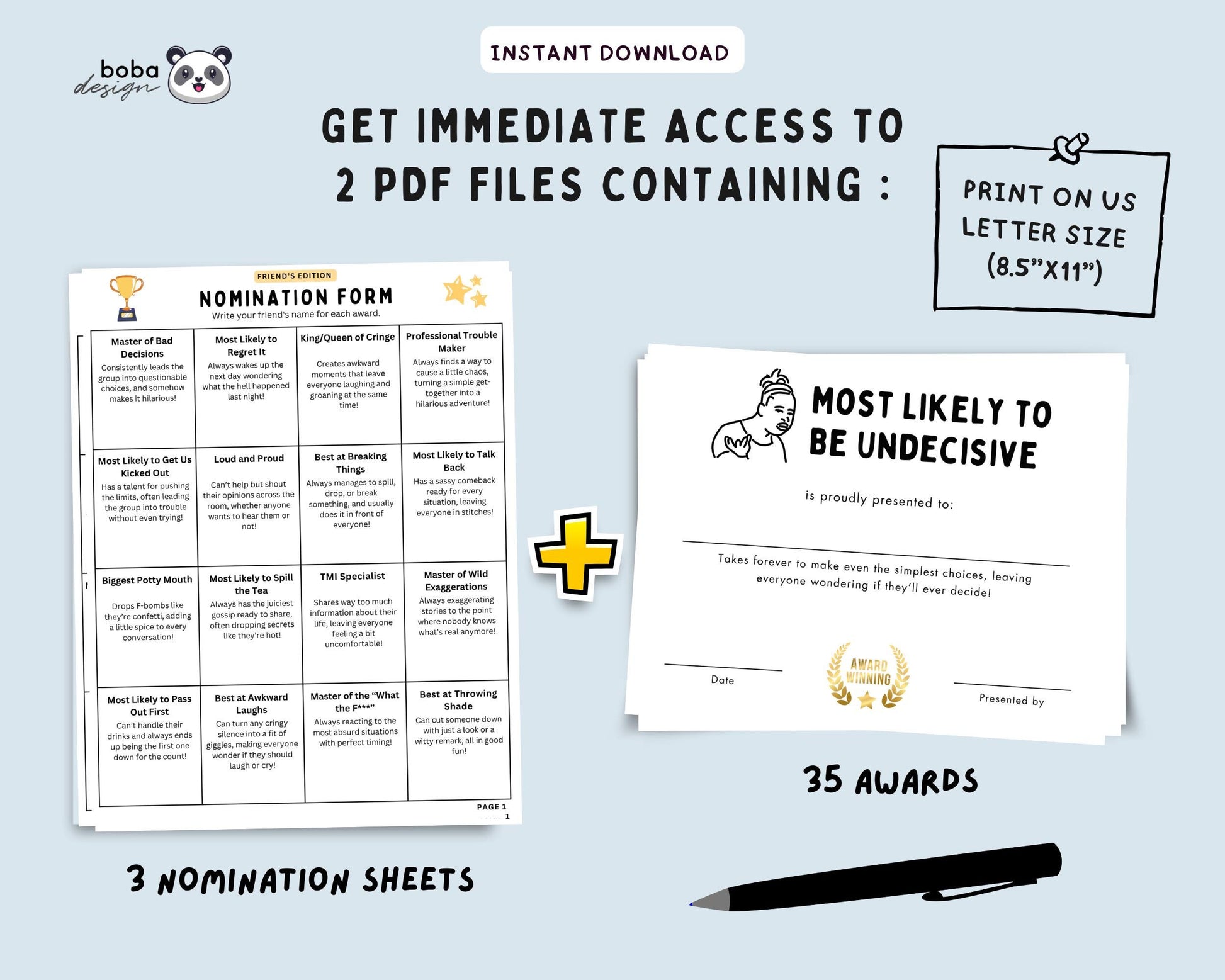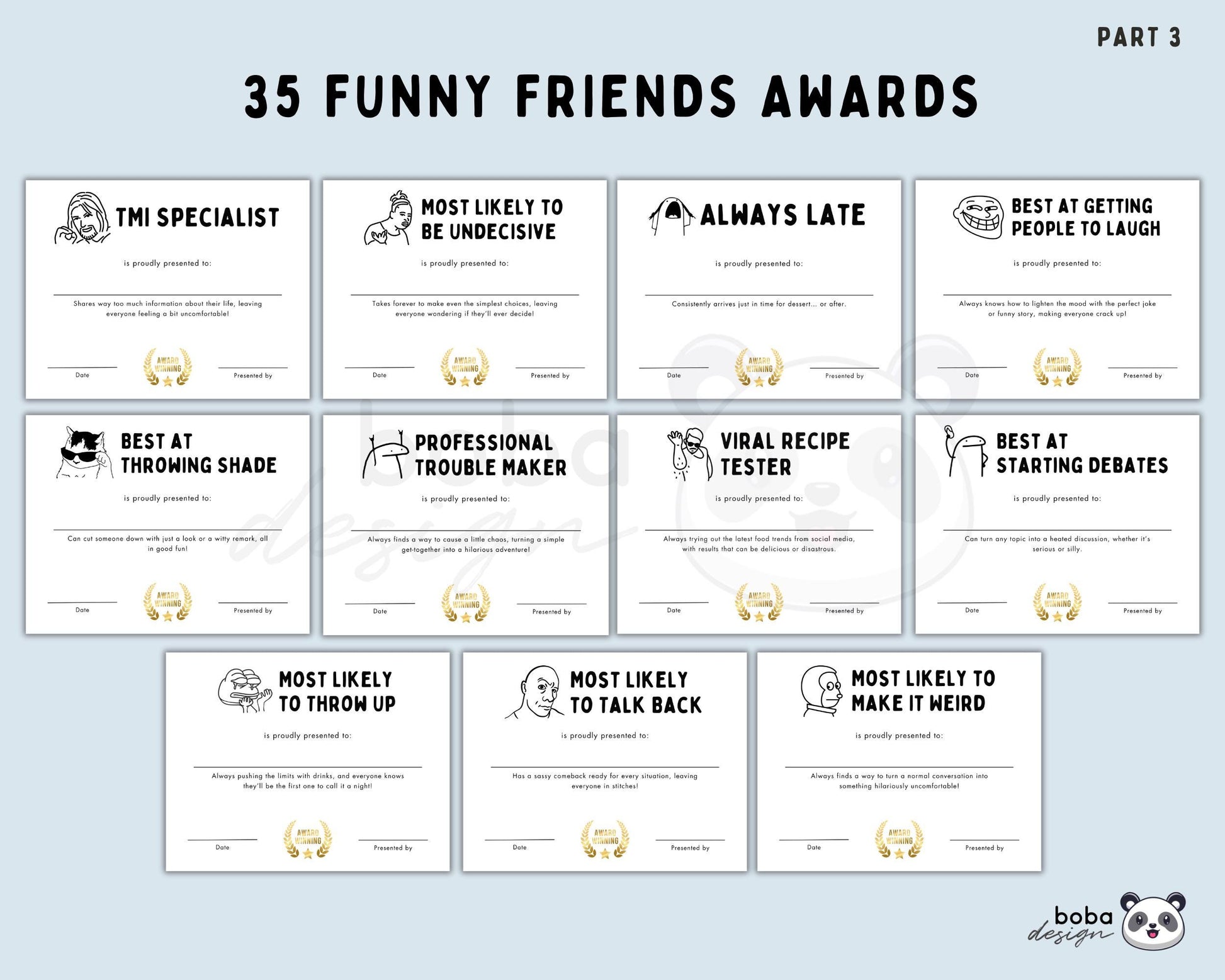 35 Funny Friends Awards - Printable Appreciation and Reunion Gift
