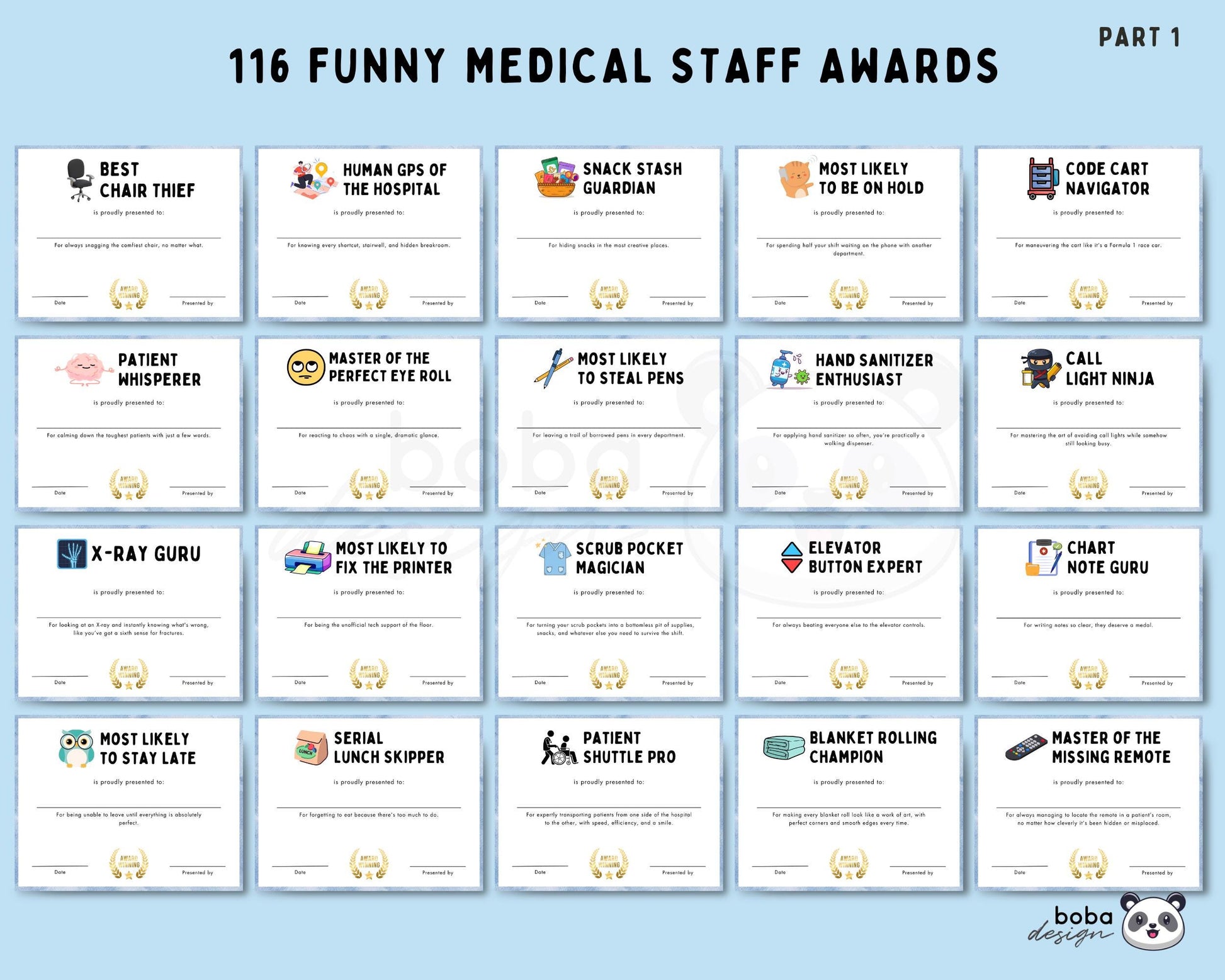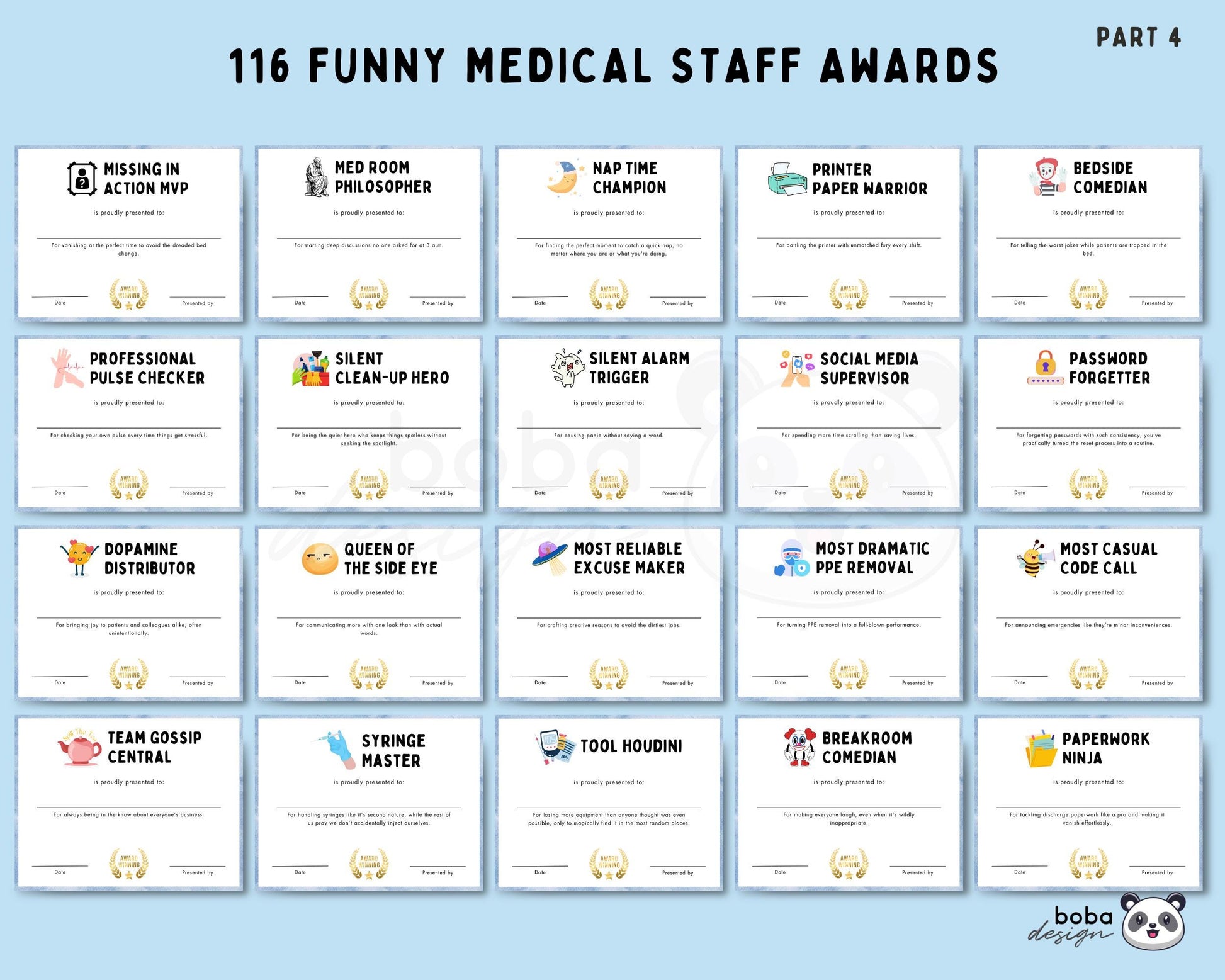 116 Printable Funny Medical Staff Awards - Appreciation Awards