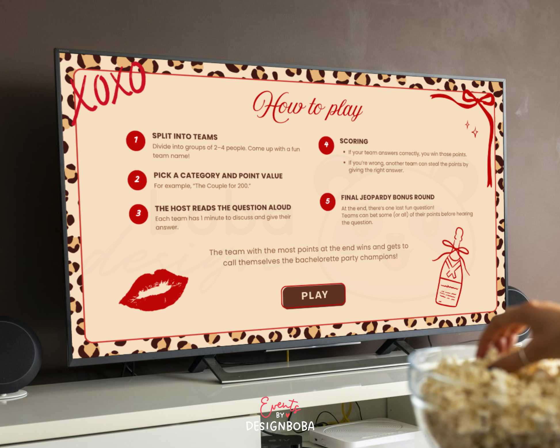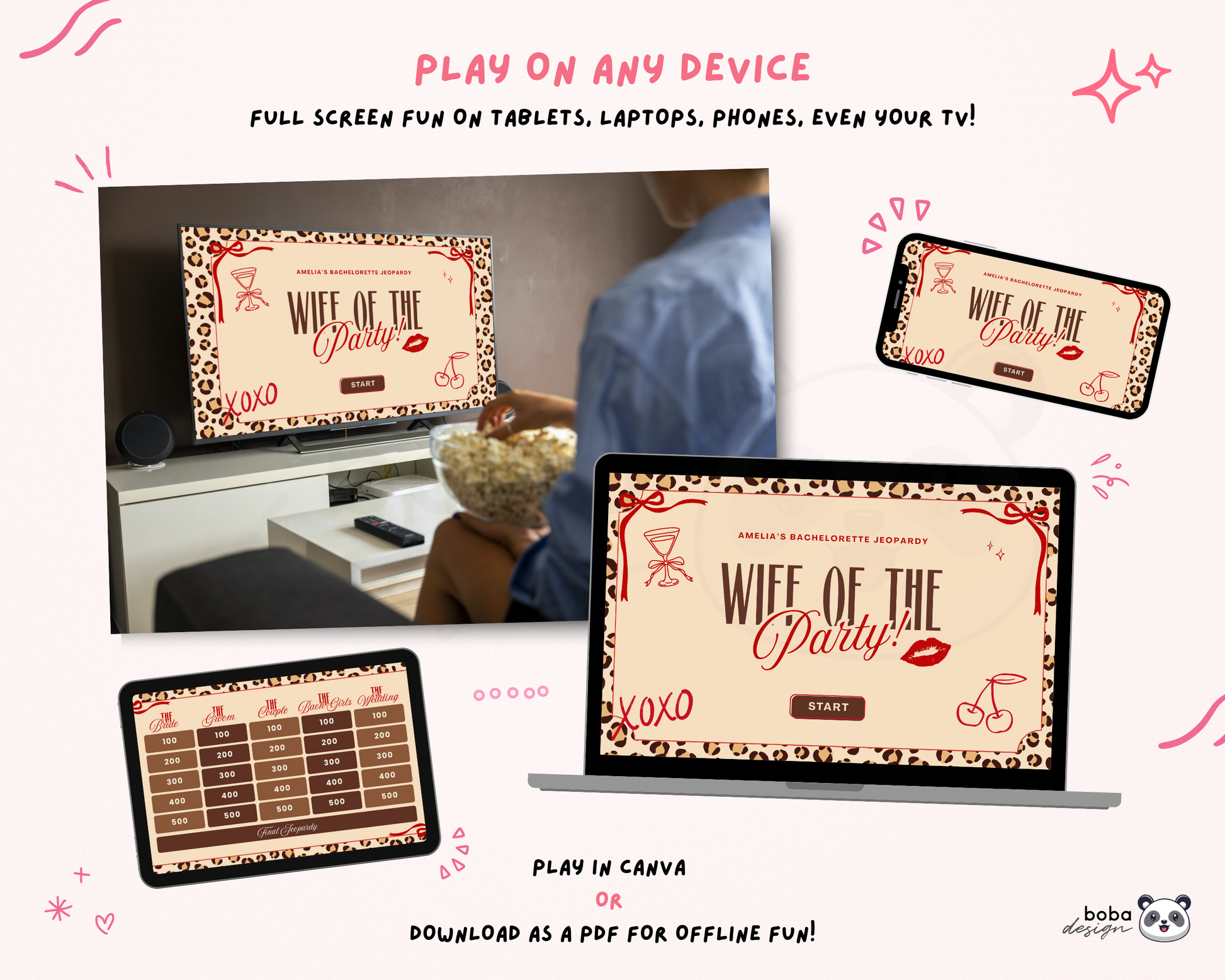 Looking for a fun and interactive game to celebrate the bride? This Jeopardy style game is made for bachelorette parties and girls nights where you want easy laughs, playful competition, and moments everyone will remember.