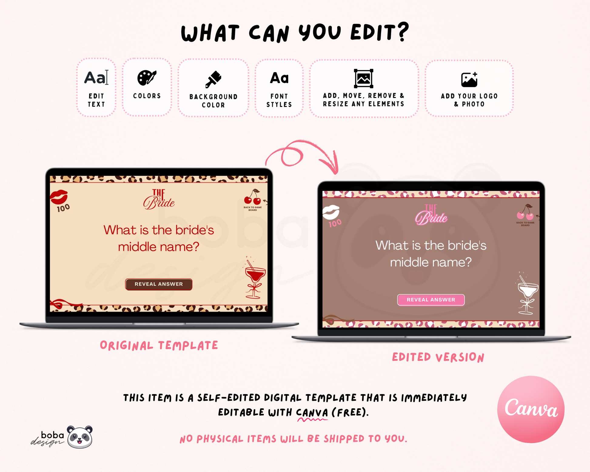 ⚠️ Please note that this is a digital download. No physical items will be shipped to you. This game is a CANVA template – super easy to edit, even if you’re new!